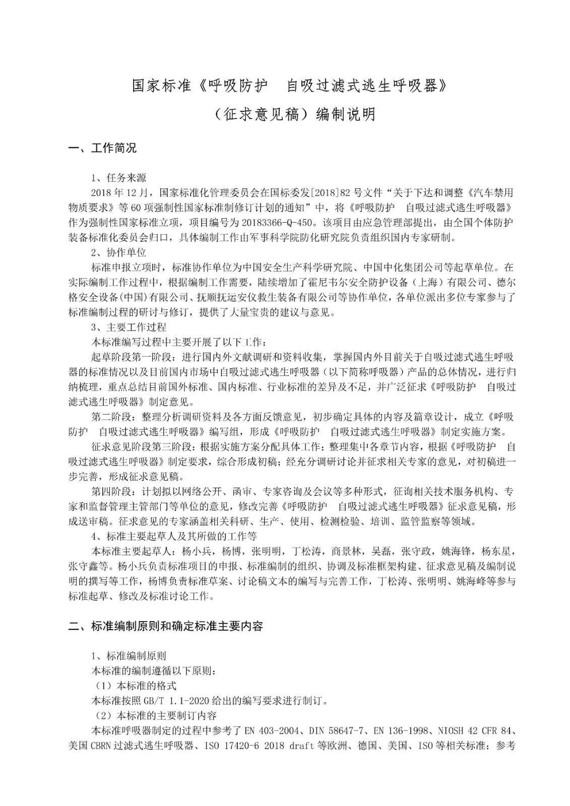 國家標(biāo)準(zhǔn)《呼吸防護(hù)自吸過濾式逃生呼吸器(征求意見稿)》公開征求意見