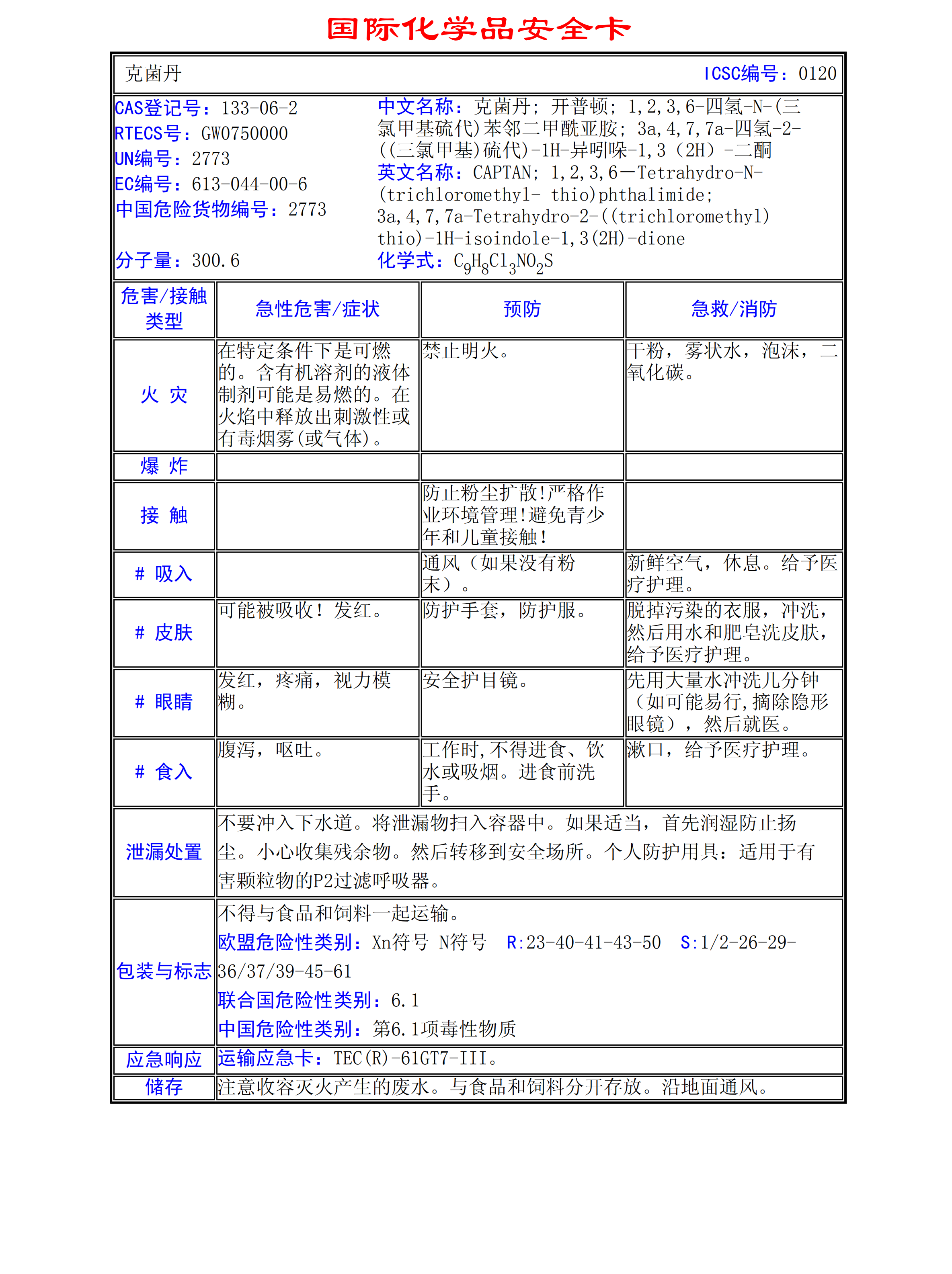 克菌丹MSDS