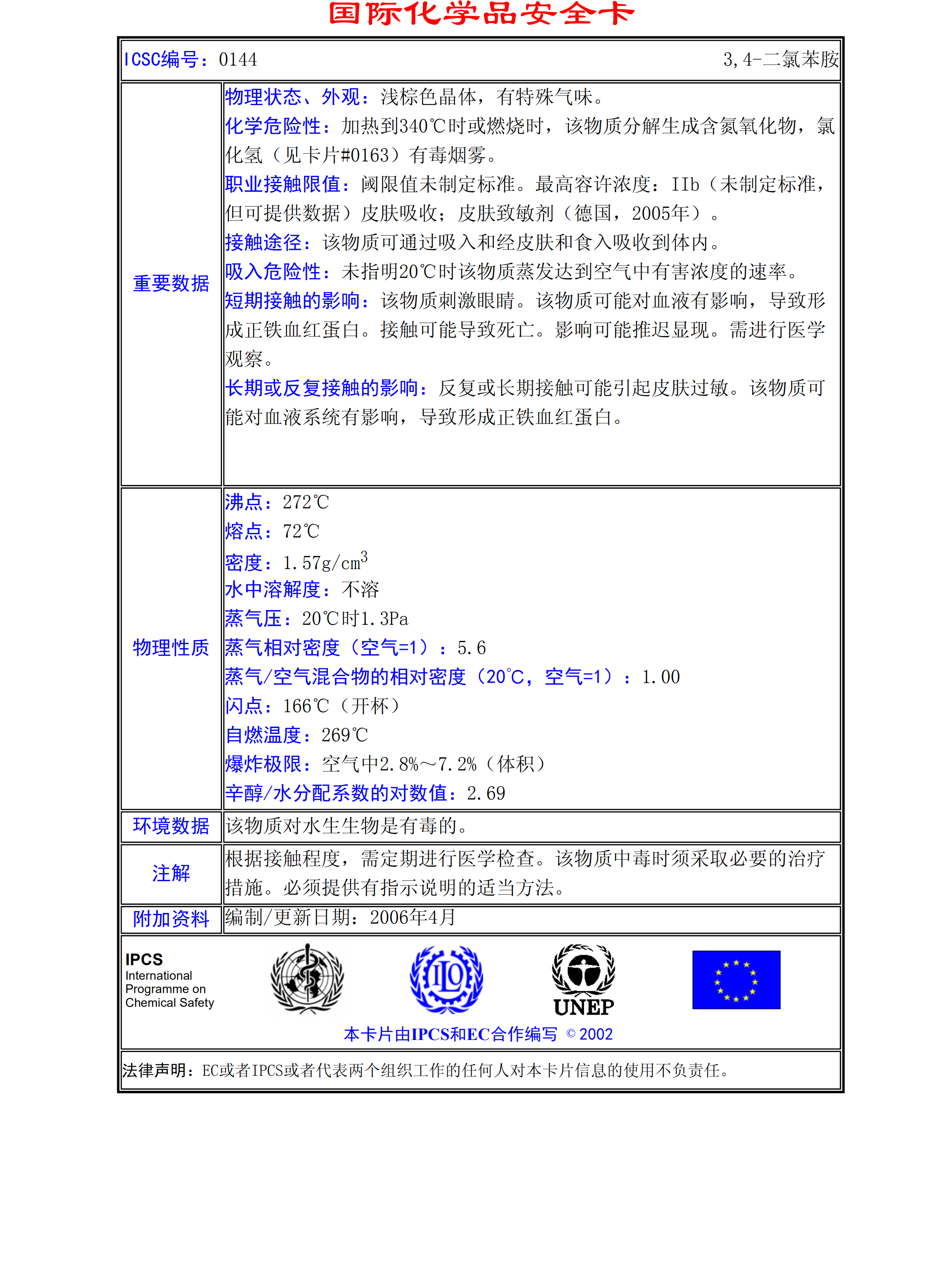 3,4-二氯苯胺MSDS