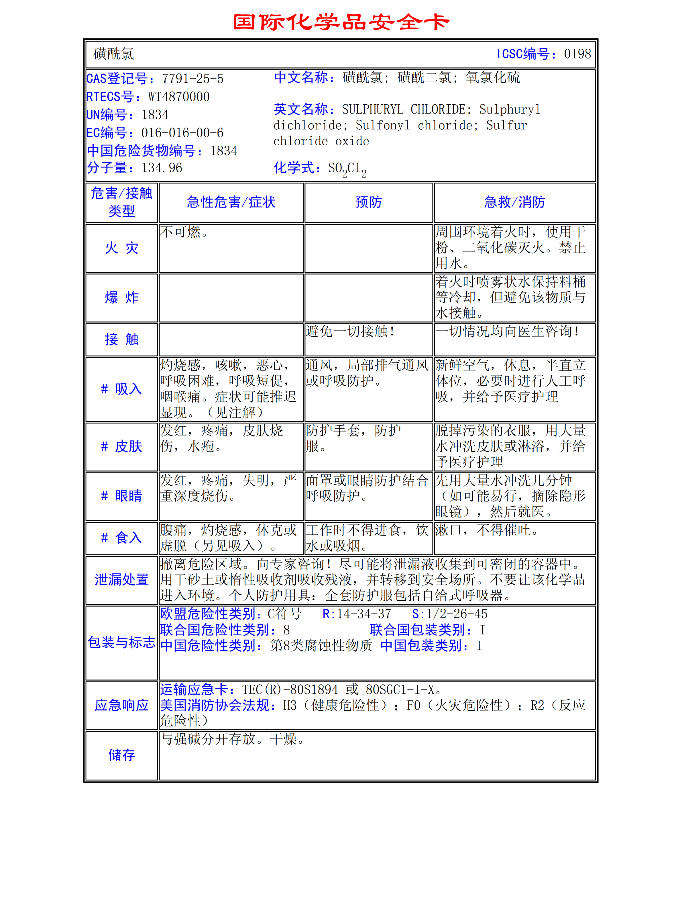 磺酰氯MSDS