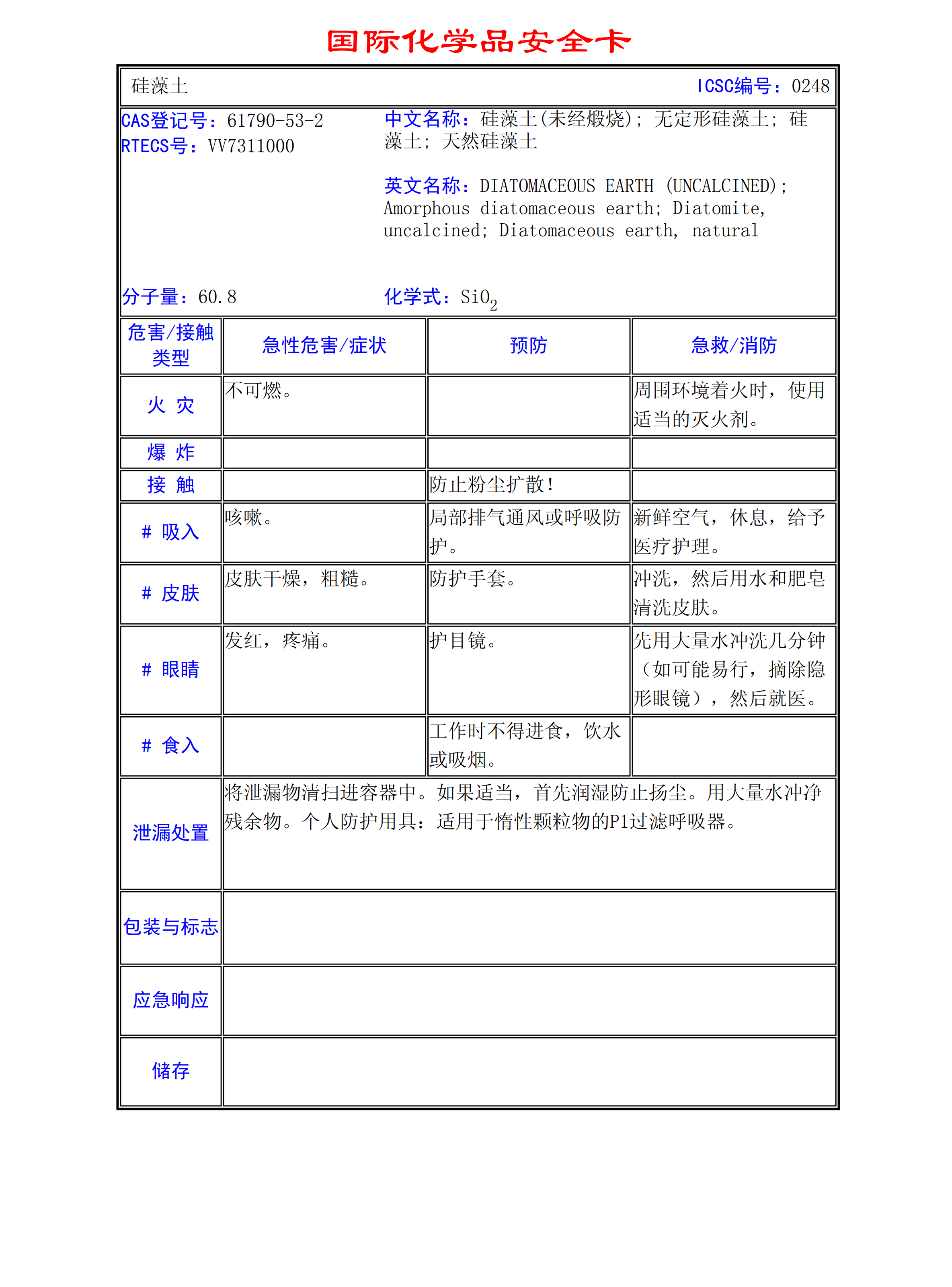 硅藻土MSDS