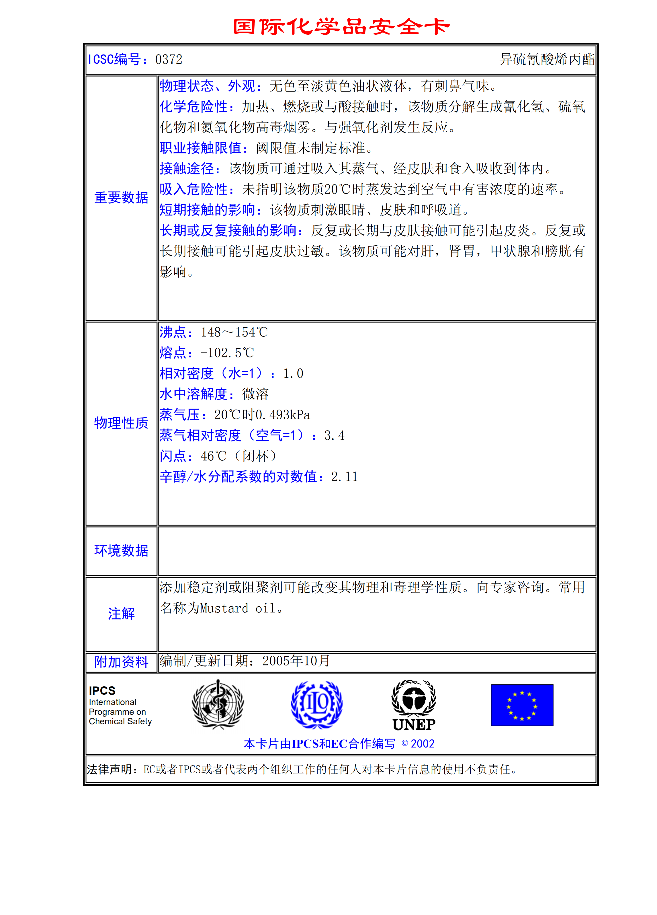 異硫氰酸烯丙酯MSDS