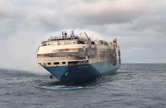 美國有線電視新聞網(wǎng)(CNN)2日報道稱,F(xiàn)elicity Ace貨輪幾乎燒得一無所剩,被拖回安全港口時沉入海中。