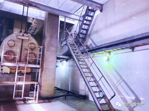 15:40安潔公司楊某某等4名作業(yè)人員,從#4機組汽動引風機室北側(cè)鋼步梯依次走下凝汽器區(qū)域準備清理垃圾及取回相關(guān)工具,走在前面的王某某、王某某在下樓梯半途中暈倒并滑落至樓梯底部,走在后面的楊某某、王某某發(fā)現(xiàn)情況異常,隨即退至汽動引風機室外,并電話報告檢修部鄭某某。
