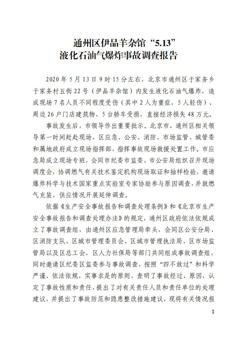 造成7人受傷,26戶建筑物、5輛汽車受損的北京市通州區(qū)伊品羊雜館“5.13”液化石油氣爆炸事故調(diào)查報(bào)告,來(lái)了!
