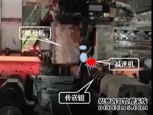 2020年2月4日,某鋼企某公司煉鋼廠設(shè)備乙班運(yùn)保作業(yè)區(qū)連鑄機(jī)維護(hù)班組接3#連鑄機(jī)切割崗位電話,需要處理5流噴號機(jī)故障。劉某某、唐某趕至現(xiàn)場與崗位工確認(rèn),并將5流噴號機(jī)操作開關(guān)打至“就地”模式進(jìn)行處理。21:20,故障處理完畢后,劉某某將操作開關(guān)選至“遠(yuǎn)程”模式,交付給切割崗位工使用。劉某某在返回值班室途中,認(rèn)為5流噴號機(jī)噴絲數(shù)量不夠,與當(dāng)時在毛刺機(jī)區(qū)域巡檢的李某某一起返回,重新進(jìn)入現(xiàn)場進(jìn)行確認(rèn)。此時噴號機(jī)由西向東自動運(yùn)行,將劉某某壓在36#傳送輥電機(jī)減速機(jī)之間,急送醫(yī)院救治,經(jīng)搶救無效死亡。