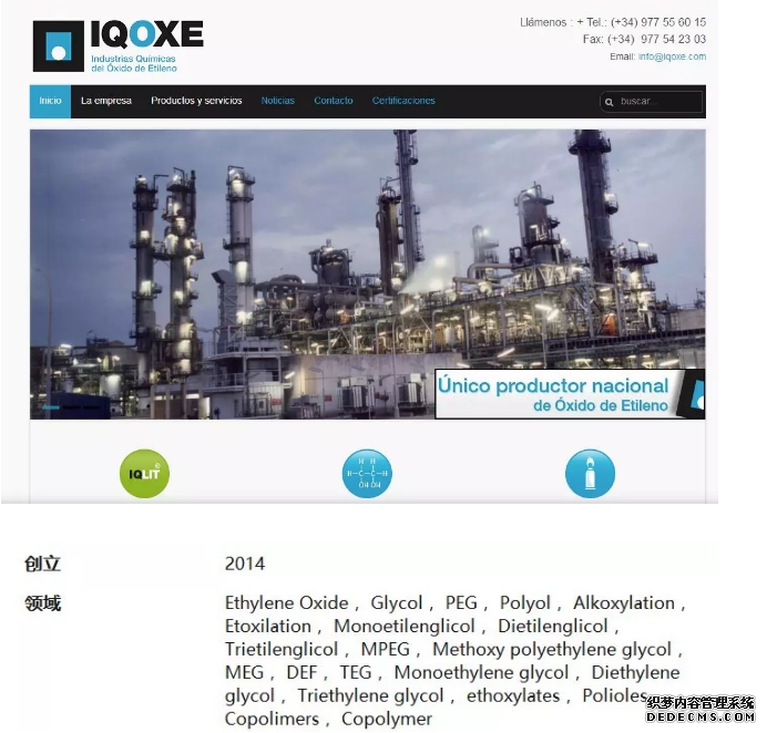 根據(jù)事發(fā)公司IQOXE的官網網站,該企業(yè)是西班牙唯一的環(huán)氧乙烷生產商。其中50%用于生產乙二醇,乙二醇是生產PET聚合物的主要原料之一。環(huán)氧乙烷是一種用于制造洗滌劑、溶劑和其他產品的化合物。