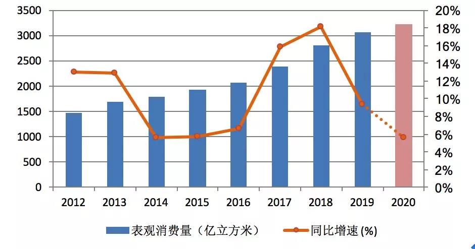 中國石油經(jīng)濟技術研究院今年年初預測,我國2020年天然氣消費量將達到3300億立方米,同比增速8.6%。