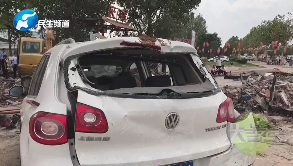 飯店門口停放的一輛白色轎車也受到波及,被炸毀↓↓↓