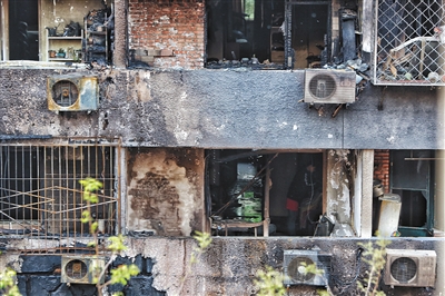該小區(qū)4號樓1單元101的劉先生家則基本上化為灰燼。記者在他家看到,墻壁被燒成焦黑色,地上沉積著到腳踝的灰燼,整個(gè)房子被燒成毛坯房樣。“沙發(fā)、柜子這些大件物品都沒有了,廚房、衛(wèi)生間都是玻璃的,也都燒化了,還有一些字畫?!眲⑾壬f,家里藏有不少洋酒等,損失慘重。
