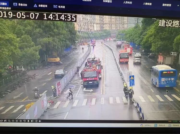 支隊(duì)指揮中心接警后,迅速啟動市政設(shè)施故障事件應(yīng)急預(yù)案并報(bào)告支隊(duì)領(lǐng)導(dǎo)。領(lǐng)導(dǎo)指揮崗迅速通知轄區(qū)中隊(duì)趕赴事發(fā)現(xiàn)場進(jìn)行交通管控并指派直屬大隊(duì)進(jìn)行增援。視頻巡查崗打開事發(fā)路段前后球機(jī)及高空云臺對事發(fā)路段進(jìn)行實(shí)時(shí)監(jiān)測。