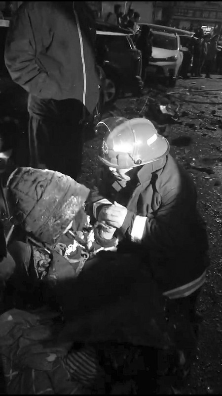 不幸之中也不乏溫暖的畫面。在現(xiàn)場,消防隊員發(fā)現(xiàn)一位老太太坐在樓下路邊哭喊,“我的孫女還在樓上!”鄰居說,她和孫女住在5樓,樓板被炸塌后孫女掉了下去。消防隊員握著老人的手,告訴她,“孩子已經(jīng)在消防車上了,大娘你別擔心。”