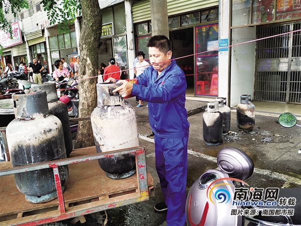 ??谝患以绮偷昝簹庑孤┮l(fā)火災(zāi) 店鋪燒毀6個(gè)煤氣瓶燒黑