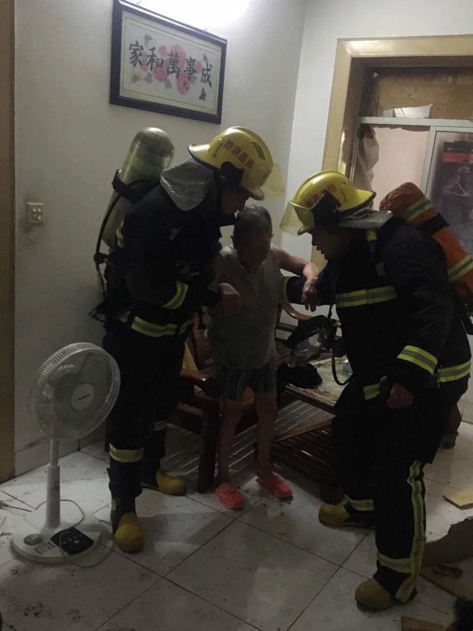 消防官兵到現(xiàn)場后,發(fā)現(xiàn)是一所居民樓發(fā)生爆炸,房屋周圍到處都是炸碎的玻璃,屋內(nèi)還有兩名老人,房屋周圍能聞到濃烈的煤氣味道。若不立即救出兩名老人,隨時會發(fā)生窒息的危險,消防官兵立即把門撞開,進屋內(nèi)發(fā)現(xiàn)老人還有清晰的意識,兩名老人身上均有不同程度的燒傷。